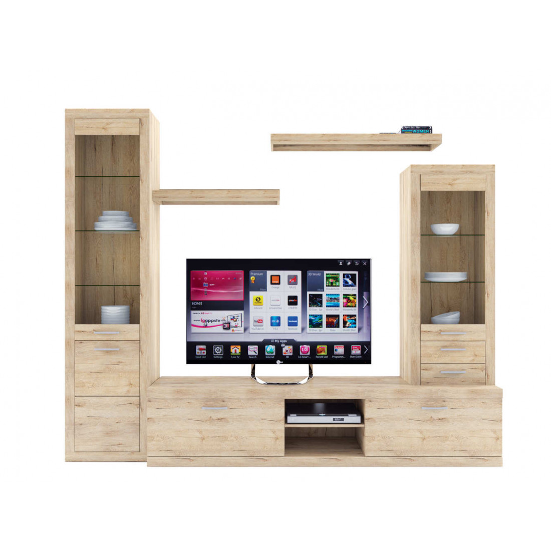 - 4 варианта тумб RTV с выдвижными ящиками на шариковых направляющих. 2 размера надставных полок для RTV-тумб (полка TVB и полка TV), позволяющих установить выше телевизор. Варианты навесных полок, соответствующих по размеру тумбам для телевизора. Тумба RTV 2S2NL имеет глубину 351 мм, что позволяет составить модули, имеющие такую же глубину, в одну линию без выступающих элементов.